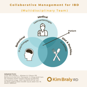 This model of management has been adopted by an increasing number of GI practices to best support their patients. There are barriers to providing collaborative care including lack of access to mental health providers and registered dietitians trained in IBD nutrition management, and lack of reimbursement for their services.